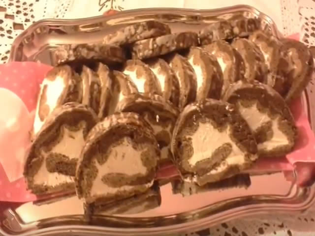 Odmotajte roladu rasporedite kremu i polako zarolajte, ukrasite po zelji.