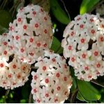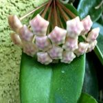 Ima mesnate zelene zimzelene, jajaste listove, duge 5-8 cm i bijele zvjezdaste cvjetove s crvenom pjegom u sredini koji rastu u gustim cvatovima. Cvjetovi imaju blag miris i tokom cvatnje ispuštaju tekućinu sličnu medu. Doba cvatnje počinje početkom lipnja i traje do jeseni.