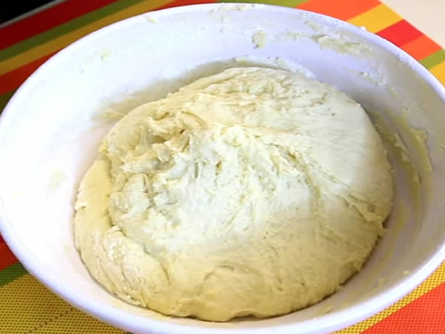 Zamesite prvo ređe testo pa dodavajte brašno.