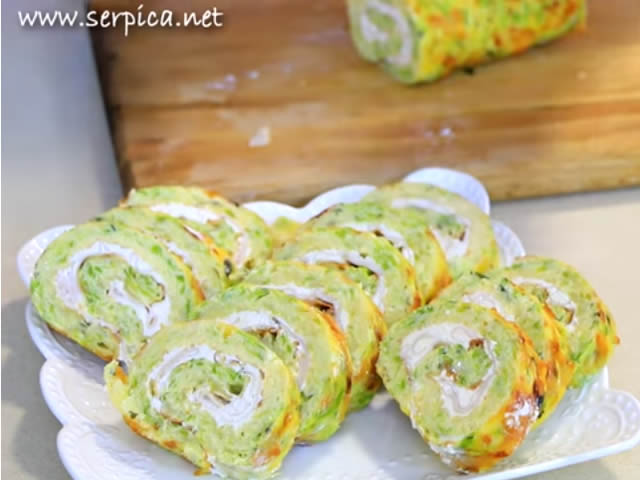 Osavite da se kora ohladi pa je namažite krem sirom, složite pileća prsa i urolajte. Pre sečenja rolat obavezno treba da stoji u frižideru da se stegne i ukusi lepše spoje.