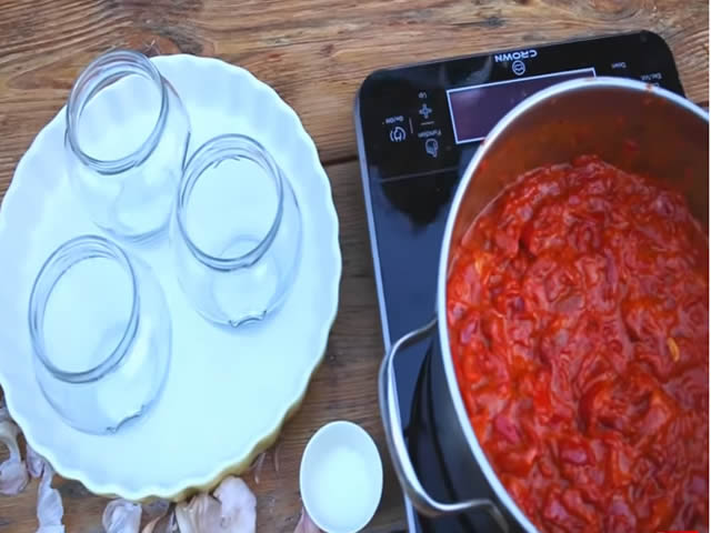 Tegle ste prethodno dobro oprali i zajedno sa poklopcima stavili u rernu na 100 stepeni da se sterilišu. Vreo ajvar sipajte u vrele tegle. Sada imate dve opcije: ili da ih zatvorite i vratite u zagrejanu rernu na sat vremena ili da nalijete ulje skoro do vrha i tako otvorene tegle stavite u rernu na sat vremena. I jedno i drugo radi posao, pa kako je vama lakše. Nakon sat vremena isključite rernu i u prvoj varijanti samo ostavite tegle da se ohlade u rerni a u drugoj avrijanti poklopite tegle i vratite u rernu da se u njoj ohlade. Od ove količine dobili smo 4-5 standardnih tegli i nekoliko manjih.