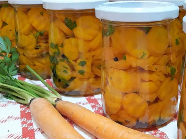 Mrkve u ulju prokuhane u blagoj mješavini vina i octa za zimnicu