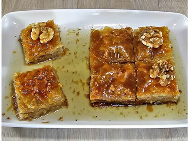 KUJNA,TOP VEST | September 17, 2018 BonApeti.rs Potrebni sastojci ZA SIRUP: šećer – 1 kg, voda – 1 l, vanila – 2 komada, mandarine – 1 komad. ZA BAKLAVU: kore za pitu – 1 pakovanje, mleveni orasi – 2 šolje, pšenični griz – 1 šolja, maslac – 150 gr, ulje – 1 kašika Video recept Čokoladno čudo za 5 minuta: Svima uspeva i svi ga obožavaju Lenja penjurlija sa sirom