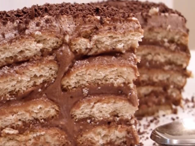 U dubljem sudu zagrejati mleko, pa umakati keks (po par sekundi sa obe strane) i ređati na poslužavnik. Namazati preko filom. Ređati naizmenično keks – fil – keks – fil, dok se ne potroši sav fil. Odozgo premazati ostatkom fila ili čokoladnim šlagom. Ukrasiti po želji.