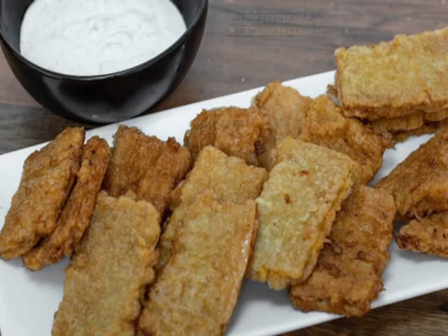 Razbiti jaja, posoliti po ukusu i malo razmutiti. U tiganj sipati ulje, sačekati da se zagreje. Isečene oblande staviti u razmućena jaja i peći u ulju sa obe strane. Pečene oblande stavljati na papirnu salvetu da upije višak masnoće. Služiti sa prelivom od majoneze i pavlake.