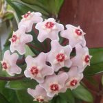 Ima mesnate zelene zimzelene, jajaste listove, duge 5-8 cm i bijele zvjezdaste cvjetove s crvenom pjegom u sredini koji rastu u gustim cvatovima. Cvjetovi imaju blag miris i tokom cvatnje ispuštaju tekućinu sličnu medu. Doba cvatnje počinje početkom lipnja i traje do jeseni.