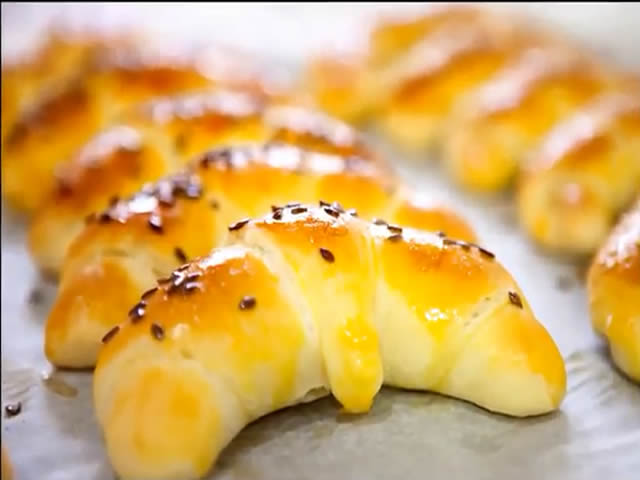Kiflice premazati žumancetom i posipati po želji susamom, kimom, lanenim sjemenom itd.