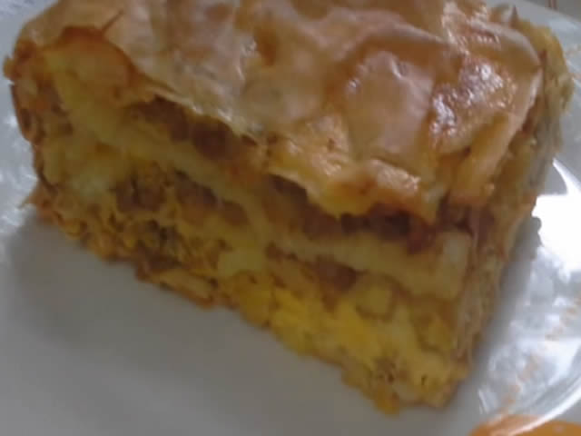 Potrebno je:Oko 400 gr gotovih kora,1 glavica luka, 500 gr mesa, ulje, zacini po zelji..