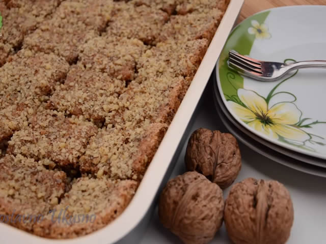 Recept za baklava kolač: 10 jaja, 300 gr oraha – 10 za piškotu, 1/2 praška za pecivo, 2 kašike prezle, 10 kašika šećera.