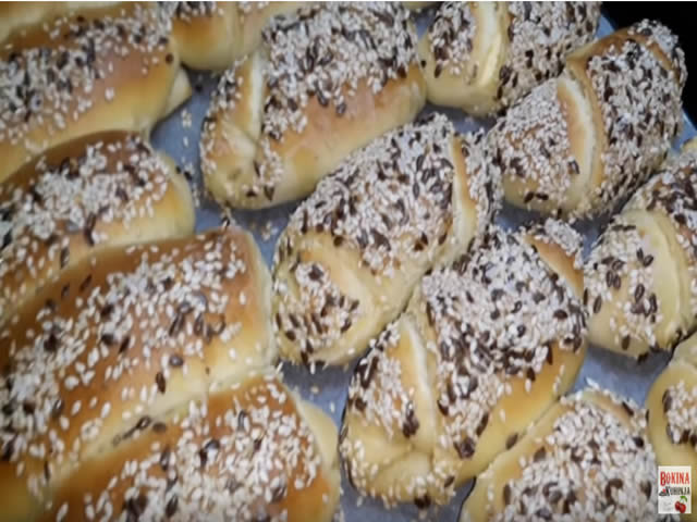 Sastojci: 1100 do 1200 gr brasna, 1 prasak za pecivo, 1 jaje u testo, 1 jaje ze premazivanje, 1 kvasac, 1 supena kasika so, 2 supene kasike secera, 100ml ulja, 250ml mleka, 200ml jogurta, 200ml kisele vode.