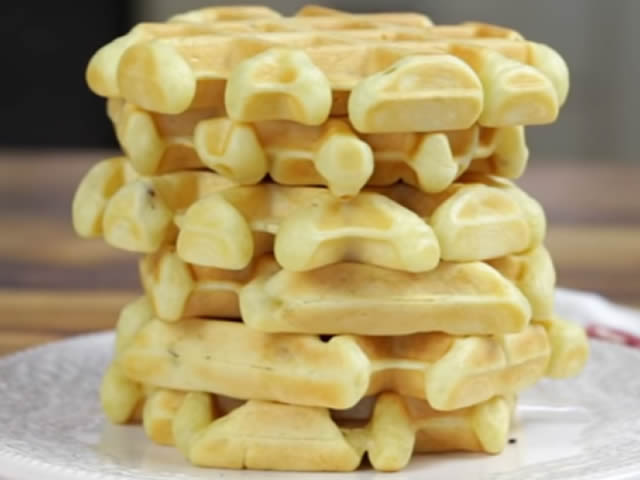 Belance umutite u čvrst sneg a žumance pomešajte najpre sa solju, mlekom i uljem a zatim smesi dodajte brašno i prašak za pecivo. Ukoliko dodajete bilo šta u testu, to uradite sada. Umućeno belance pomešajte sa testom da dobijete gustu smesu. Stavljajte po kašiku smese u aparat za vafle i pržite 4-5 minuta. Vafli su obično gotovi kada iz aparata više ne izlazi para. Prijatno!