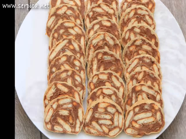 Listove oblande omekšajte u mokroj krpi. Za to vreme pripremite fil. Prokuvajte mleko, šećer, margarin, čokoladu. Izlomite keks pa prelijte vručim prelivom. Premažite polovinu fila preko jednog lista oblande, dobro utapkajte da ne bude lufta i urolajte rolat. Tako uradite i sa drugim listom oblande. Ostavite da stoji nekoliko sati, isecite i uživajte u brzom ukusnom kolaču. Prijatno!