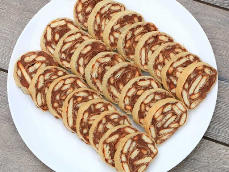 Listove oblande omekšajte u mokroj krpi. Za to vreme pripremite fil. Prokuvajte mleko, šećer, margarin, čokoladu. Izlomite keks pa prelijte vručim prelivom. Premažite polovinu fila preko jednog lista oblande, dobro utapkajte da ne bude lufta i urolajte rolat. Tako uradite i sa drugim listom oblande. Ostavite da stoji nekoliko sati, isecite i uživajte u brzom ukusnom kolaču. Prijatno!
