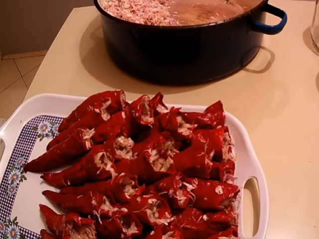 Recept: 2 veće glavice svežeg kupusa, 30 suvih paprika, 2kesice mlevenog bibera, 2 manje glavice belog luka, 1/2veze peršuna, so ulje i alkoholno sirće po ukusu.