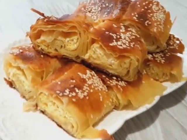 KUJNA,TOP VEST | January 12, 2019 izvor:Milica Mihailović Sastojci: 500 g brašna 250 ml mleka 1 kašičica suvog kvasca 250 ml mleka 2 jaja + 3 + 1 250 g sira malo ulja oko 150 g margarina malo soli malo šećera susam Detalje pripreme pogledajte u videu: Mantije sa sirom Veoma mekana pogača