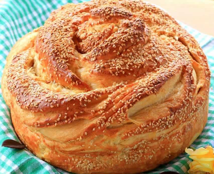 Ostavite da stoji u tepsiji oko 20 minuta, premažite jajetom i pospite susamom.