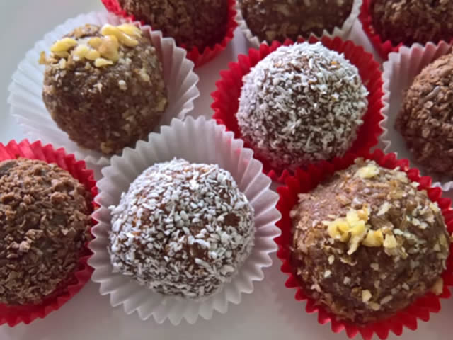 Mogu se valjati u mlevenu cokoladu,kokos ili orahe,Po mom misljenju najlepse su sa mlevenom cokoladom.