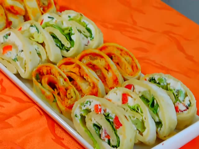 Tortilja rolnice recept. Sjajno predjelo, interesantnog izgleda i odličnog ukusa. Idealno za vegeterijance. Može da posluži i kao sjajno slavsko predjelo.