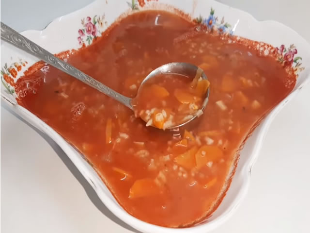 KUJNA,Posno,TOP VEST | March 12, 2019 izvor:Bokina kuhinja Sastojci: 500ML KUVANOG PARADAJZA 200ML VODE 1 SARGAREPA 1 GLAVICA LUKA MALO PRAZILUKA 50 GR PIRINCA BOSILJAK SIVI SUVI PERSUN SO SUVI ZACIN Detalje pripreme pogledajte u videu: Brzo, ukusno, bez pečenja: Mentos šnite za 10 minuta Prste da poližeš:Recept za posni pasulj prebranac