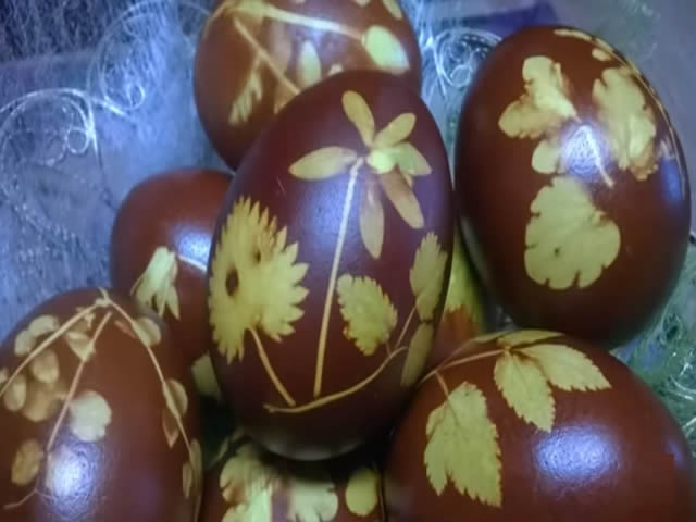 Da bi kreirali jaja sa motivima prirode morate koristiti lišće i biljke koje će vam pomoći u dizajnu.