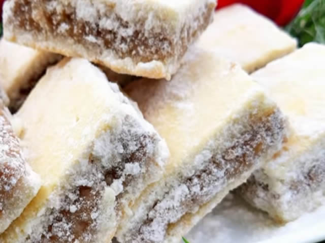 1 KORU ZAPECI 5 MIN NA 180 C,POSLE 5 MI IZVADITI STAVITI FIL I ODMAH STAVITI DRUGO TESTO IZBOCKATI CACKALICOM I PECI OKO 25 MIN JOS NA 180 C..TOPLE KOCKE ODMAH SECI I UVALJATI U SECER U PRAHU