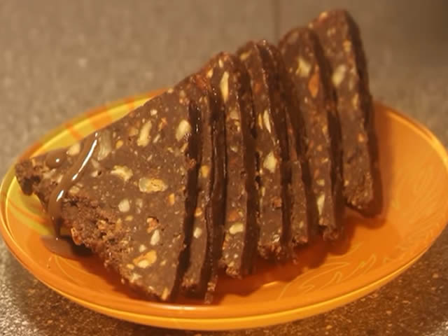 Ušpinovati šećer sa vodom. Skloniti sa šporeta dodati margarin i čokoladu, kada se istope dodati mlevene i seckane lešnike. Dobro promešati i sipati u podmazan kalup. Ostaviti u frižider da se stegne. Po želji se mogu preliti i glazurom od čokolade. Prijatno!