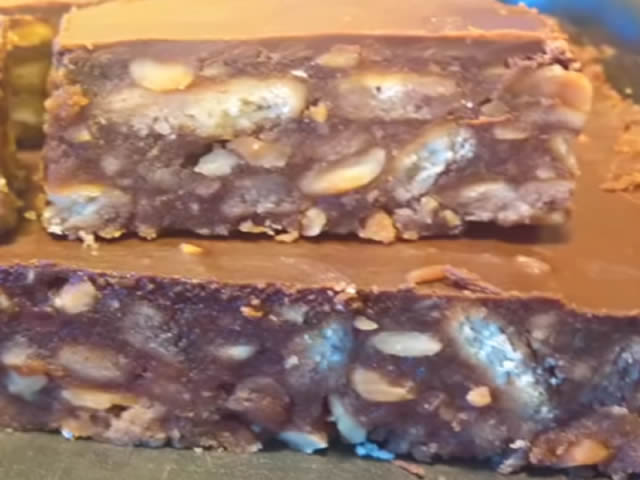 skloniti sa vatre i dodati 2 pune kasike kakao praha 1 vanilin secer ili aromu vanile, 200g lomljenog posnog keksa, 250g mlevenog posnog keksa, 250g mrvljenog slanog kikirikija (stavite u kesu i izmrvite oklagijom) lepo sjedinite i sipajte u pleh ili kalup