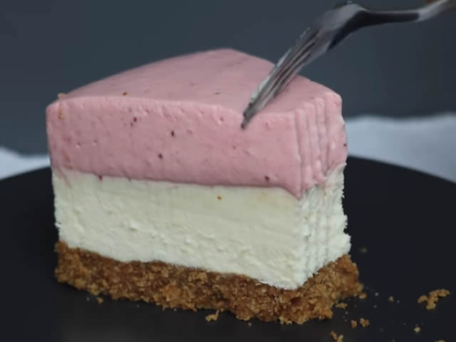 Napomena: Kremi s jagodama je potrebno više pomoći da se dobro stisne pa možete staviti većinu želatine u nju (oko 3/4), pogotovo ako koristie “prirodni šlag”. Također ja sam zaboravio obložiti bočne stranice kalupa papirom za pečenje što je dobro napraviti radi lakšeg vađenja i urednijeg izgleda.