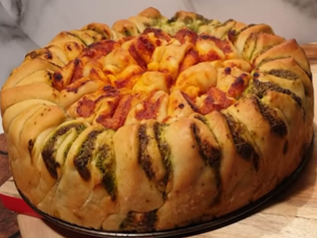 Ovim zanimljivim a jednostavnim kruhom možete iznenaditi svoje ukućane a vrlo je praktičan kod grilanja…jer se trga (kida sa prstima). Nadjev i suhe začine možete staviti po vlastitom izboru! Isprobajte i uvjerite se sami…