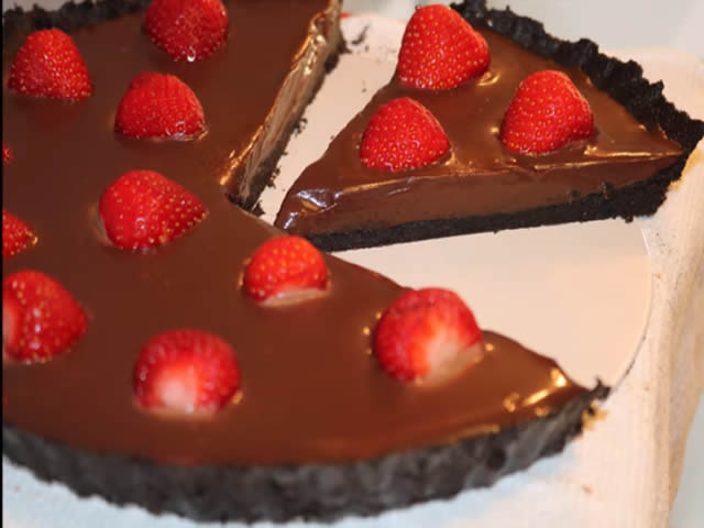 Čokoladni tart s jagodama, ima vrlo malo sastojaka, radi se za manje od pola sata, a okus mu je fenomenalan.