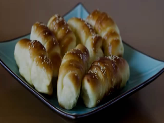 Staviti kiflice u posudu za pečenje i premazati umućenim jajetom. Zatim posuti susam preko kiflica i ostaviti da odstoje još 1 sat.