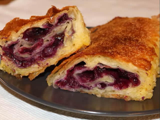 Štrudla s borovnicama, brzo se radi, savšeno je sočna, a premaz kojim se kore premazuju je nešto stvarno posebno.