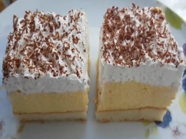 7 bjelanjaka, 7 žlica šećera, 7 žlica brašna, 1 prašak za pecivo + 200 ml mlijeka ( za preliti biskvit )