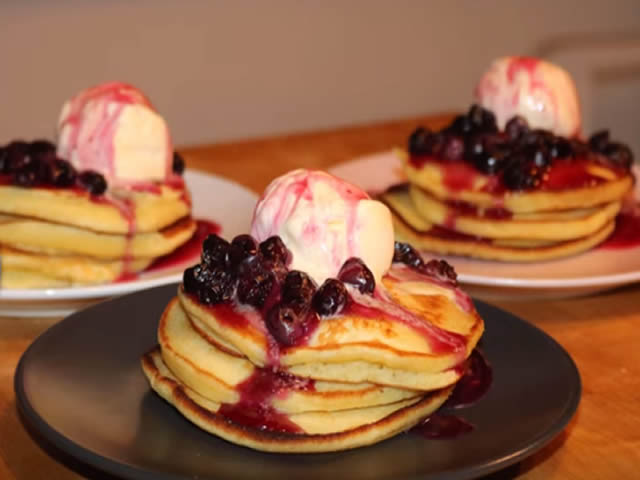 Američke palačinke s domaćim preljevom od borovnica (ili drugim voćem). Brzo se rade, prefine su i možete ih kombinirati s čim god poželite.