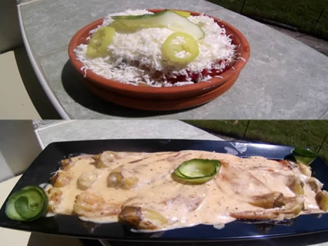 10-15 pečeni i oljuštenih paprika propržiti na ulju. Izvaditi iz posude i u istom ulju dodati par čena naseckanog belog luka kratko propržiti dodati 1kašiku brašna i lepo upžiti. Dodati 250ml.jogurta 200ml.vode. Posebno potopiti sos ili krem supu od pečuraka u 200ml.vode pa dodati u tavi kratko prokrčkati pa dodati 200ml.neutralne pavlake i začine. So, biber, mirodjiju. Paprike vratiti u sos poklopiti tavu i na umerenoj temperaturu 10min.prokrčkati.
