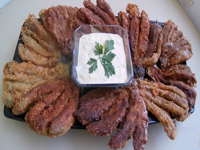 Oljuštiti pl.paradajz pa izrezati. Tako izrezsnog obarite u kipućoj slanoj vodi 5min.Zatim ispanirati u prezlu sa su susamom pa u umućena jaja i pržiti na vrelom ulju.
