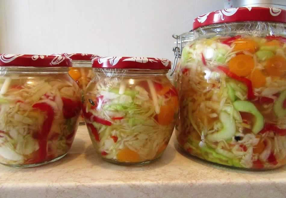 4 kg kupusa, 2 kg paprika, 1 kg mrkve, 1 kg zelenih rajčica, 600 g luka, krastavci …