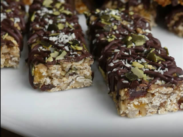 Prosarala sam sa 200g crne cokolade malo bele izrendala i malo semenki od bundeve a moze kako zelite;