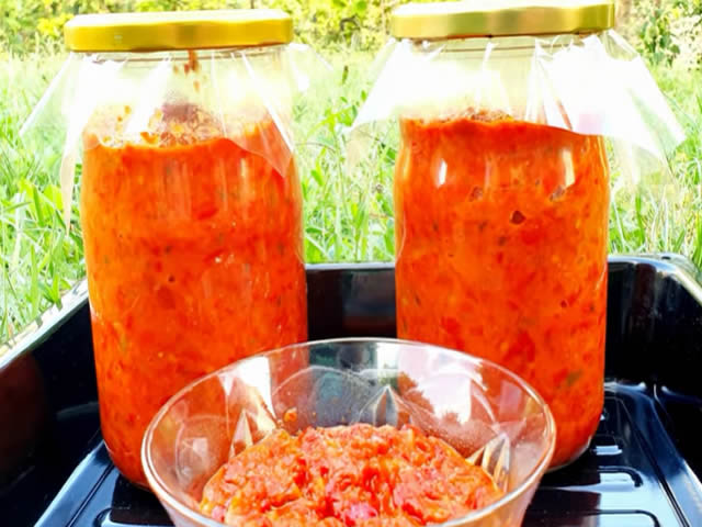 Vruc pindjur sipati u zagrejane tegle i staviti bez poklopca u rernu na 100c oko 15 min da se uhvati korica potom rernu ugasiti i ostaviti tegle i dalje u rerni jos jedno pola sata potom izvuci staviti celofan i poklopce na tegle i umotati ih u neko cebe.
