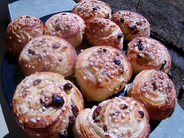 Napravljene pužiće premažite umućenim belancem pa pospite prah šećerom u granulama. Ako ga nemate kad ispečete pužiće pospite ih šećerom u prahu.