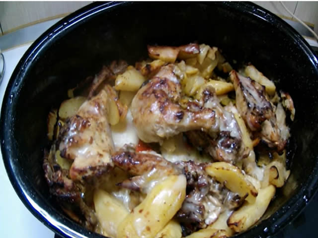 Pile izrezano u komade zatim dodati svo povrće i začine preliti ostatkom ulja. Rukom ili kašikom sve sastojke promešati i ubaciti u zagrejanu rernu na 200-220c. Peći u zavisnosti od vaše rerne od 45min.-1 sata.