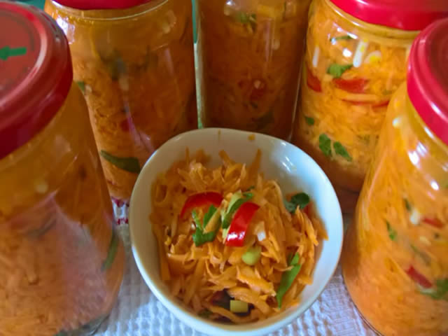 Recept za ovu prelepu salatu dobila sam od moje drage komsinice Zorice.Ja sam radila sa pola mere.Ispod vide napisacu mere u videu i mere za originalni recept.Mene je ova salata odusevila.Nije previsa ljuta taman kako treba.