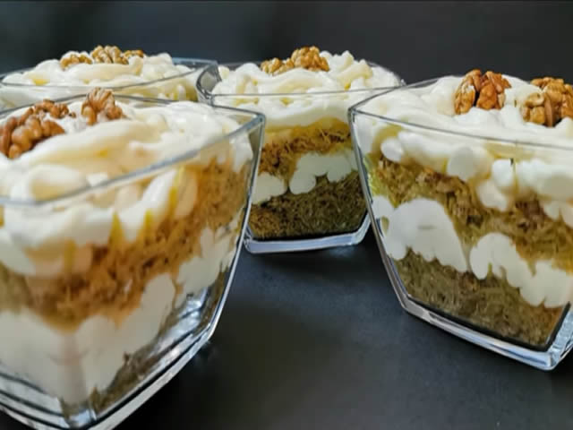 Muhalebi kadaif je tradicionalna turska poslastica. U isto vrijeme i hrskava i tako kremasta da ostavlja bez daha. Lako se priprema, nije skupa a izdašna je.