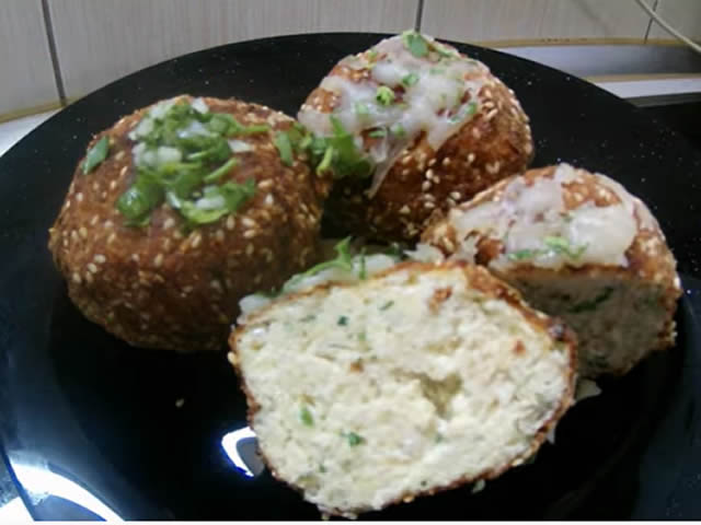 Od pripremljene smese praviti kugle uvaljati u panir i pržiti u zagrejanom ulju.