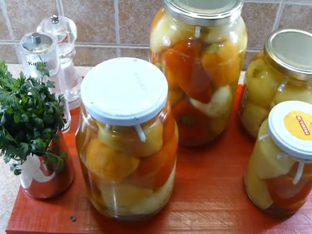 Presolac skuvati od pomenutih namirnica i paprike obariti,složiti u tegle i zaliti sa istim presolcem .Pritisnuti i zatvoriti ,čuvati na tamnom i hladnom mestu. Prijatno!!!