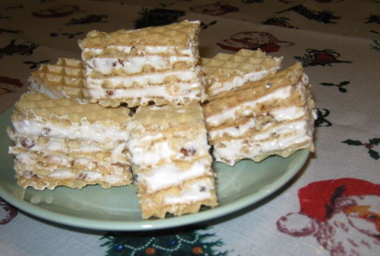 Kada je snijeg dobro ulupan i kuhan toliko da se se zgusnuo i malo se lijepi, skinuti sa pare i u njega umJešati sjeckane orahe.