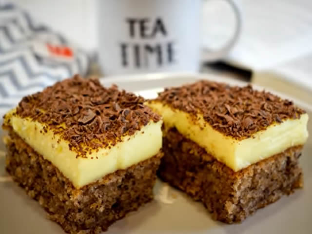 Veoma ukusan kolač sa orasima i lepom vanil kremom.