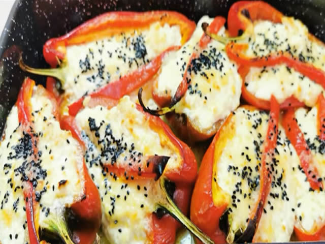Zapečene paprike sa 3 vrste sira su u isti mah i prilog i glavno jelo, ovisi od vas i vašeg ukusa.