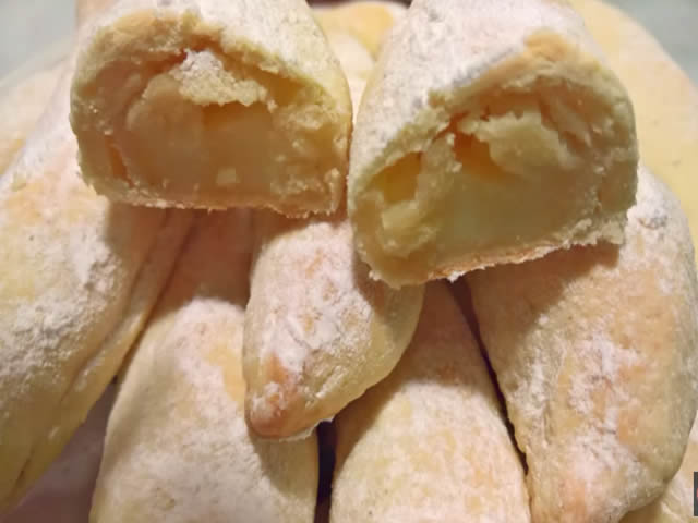 Prhke, slatke kifle sa pudingom od vanile.Kombinacija prhkog testa sa vanil kremom odlicnog je ukusa.Od sastojaka koje uglavnom imate,bez cekanja.Zamesite,oblikujete i za pola sata imate preukusnu poslasticu.