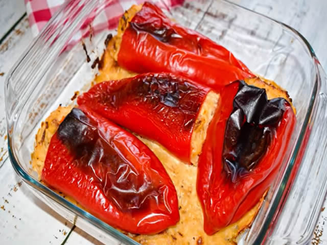 Paprike punjene krompirom i sirom mogu biti poslužene kao prilog a mogu biti i kao ručak bez mesa.